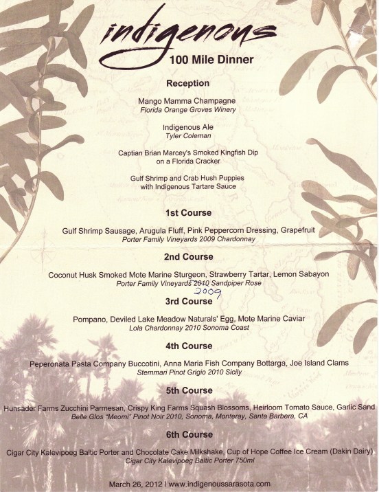 This rates as one of the most creative dinners I’ve had the pleasure to experience. The chef owner of Indigenous created all of the courses from ingredients found within a 100 miles of Sarasota.