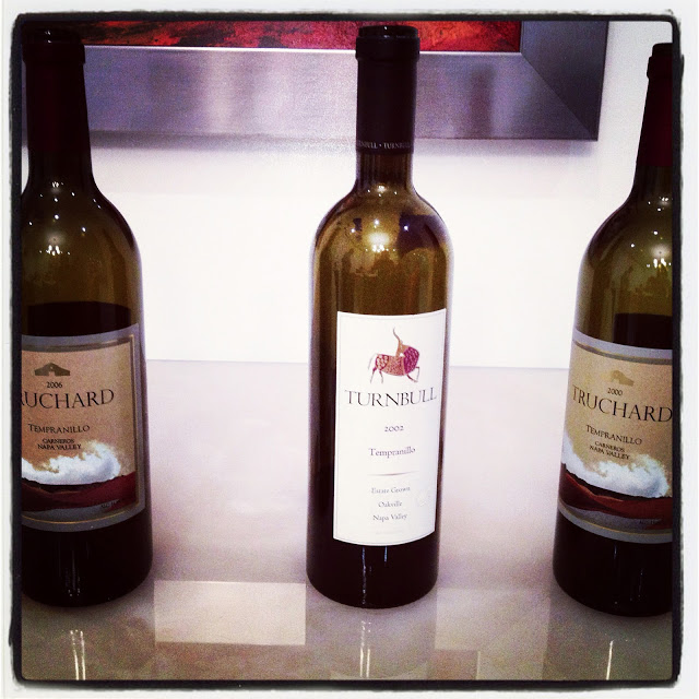 We tasted six Tempranillo wines from California’s Napa and Lodi regions, 2000 – 2006 vintages. They were good to very good, smooth and silky. Then, as a comparison, we tasted two Spanish Rioja wines and they were real show stoppers: a 2001 Cune Rioja Reserva (85% Tempranillo, 5% Mazuelo, 10% Graciano) and a 1995 La Rioja Alta Cosecha Gran Reserva (100% Tempranillo). The Spanish wines were by far the best, so classic, rich and elegant. Nibbling on melon, cheese and cecina – Spanish cured air-dried beef and bull – intensified the rich, round flavors. Viva La España!