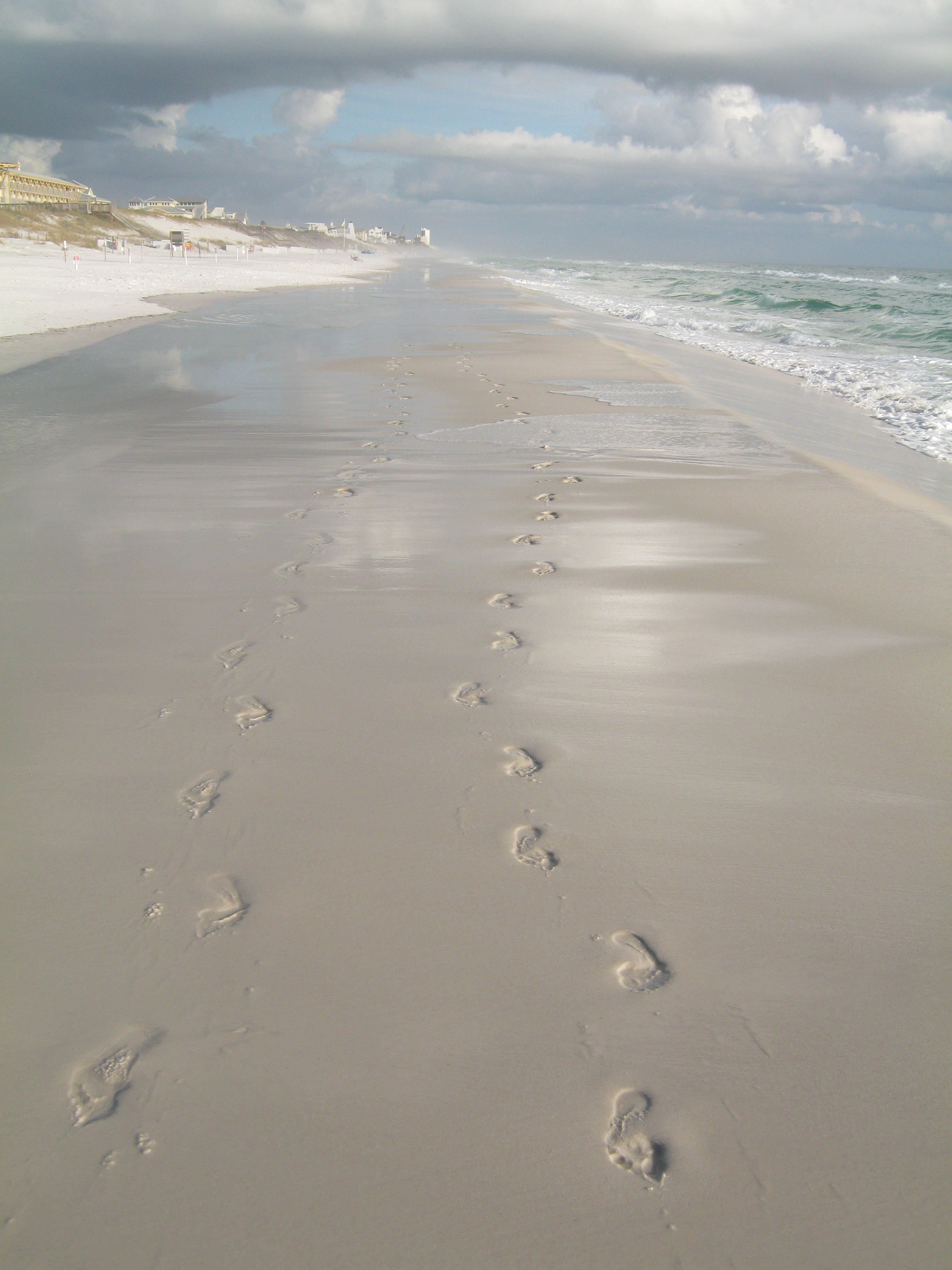 We walked back from Seaside to Grayton on our final day. The beach was marvelously deserted and the surf was loud. I found 26 cents, two tiny plastic kid sand toys but nary a shell larger than a coquina. It was still heaven!