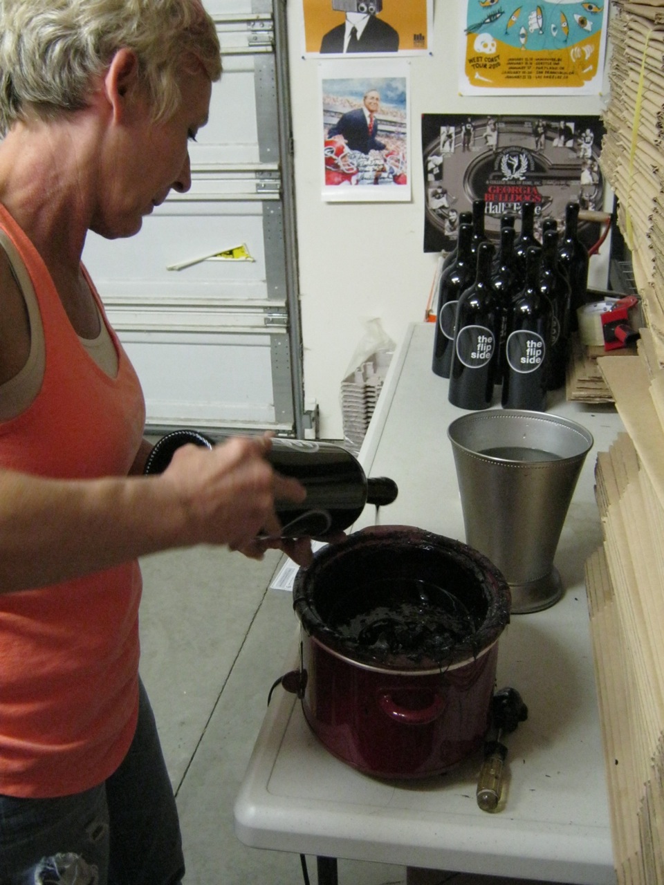 Lori, at Sleight of Hand was one of those terrific individuals we had an opportunity to meet. She poured for us, fed our interest with grape details, gave us the low down on the label artist and showed us the art of waxing a magnum with “high-tech” equipment all while listening to Pearl Jam on LP’s!