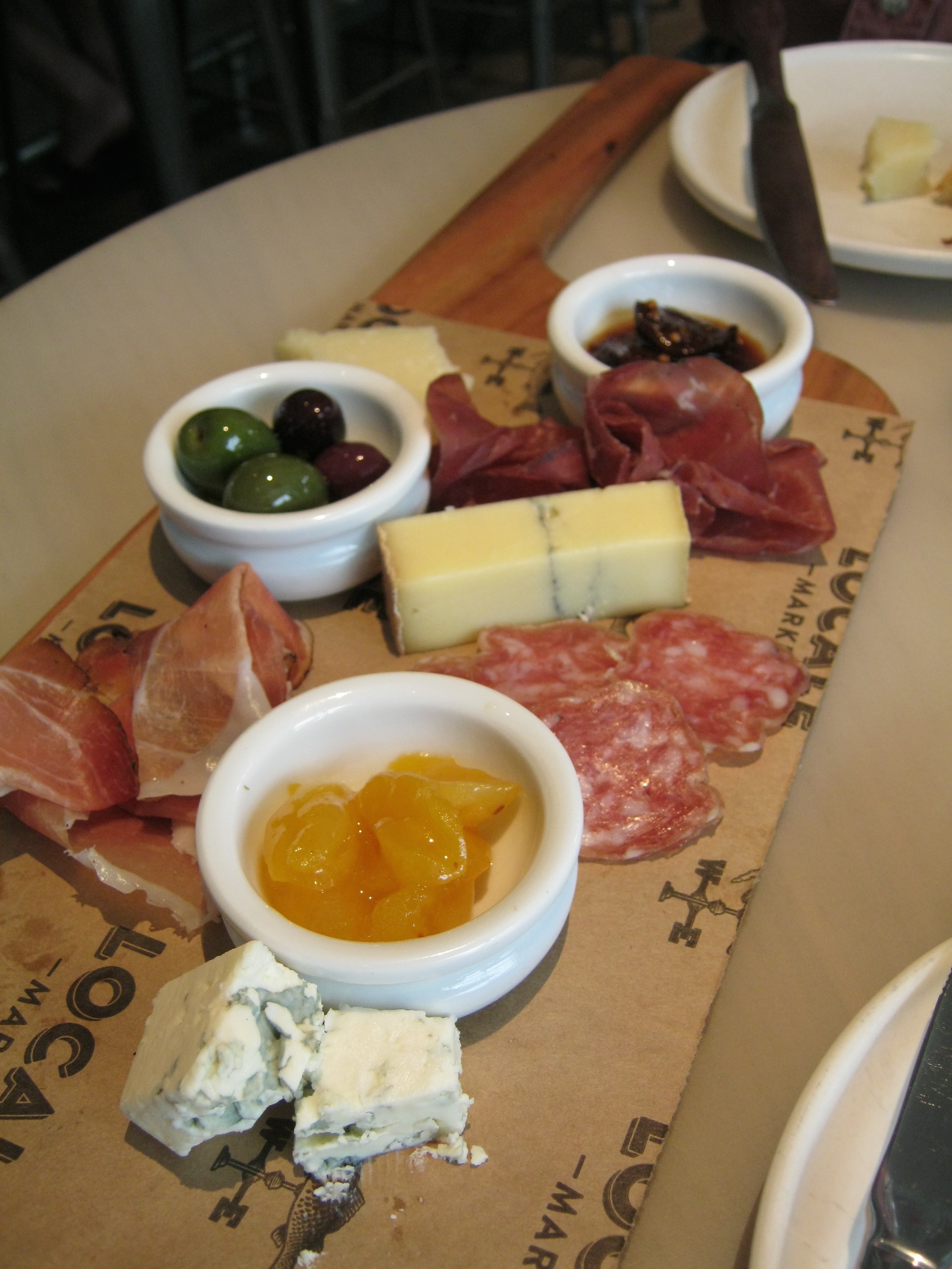 but we ordered wine by the glass trying a 2012 Stolpman Vineyard Syrah and a 2011 Torii Mor Pinot Noir. We paired the wines with a meat and cheese plate that was amazing.
