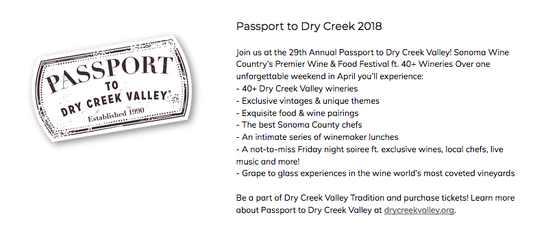 This was a winery member /guest event. Every weekend there are one or more of these scheduled throughout Sonoma. There are also larger ticket events scheduled. One coming up in April is Passport to Dry Creek Valley. This will be our first year attending Passport.