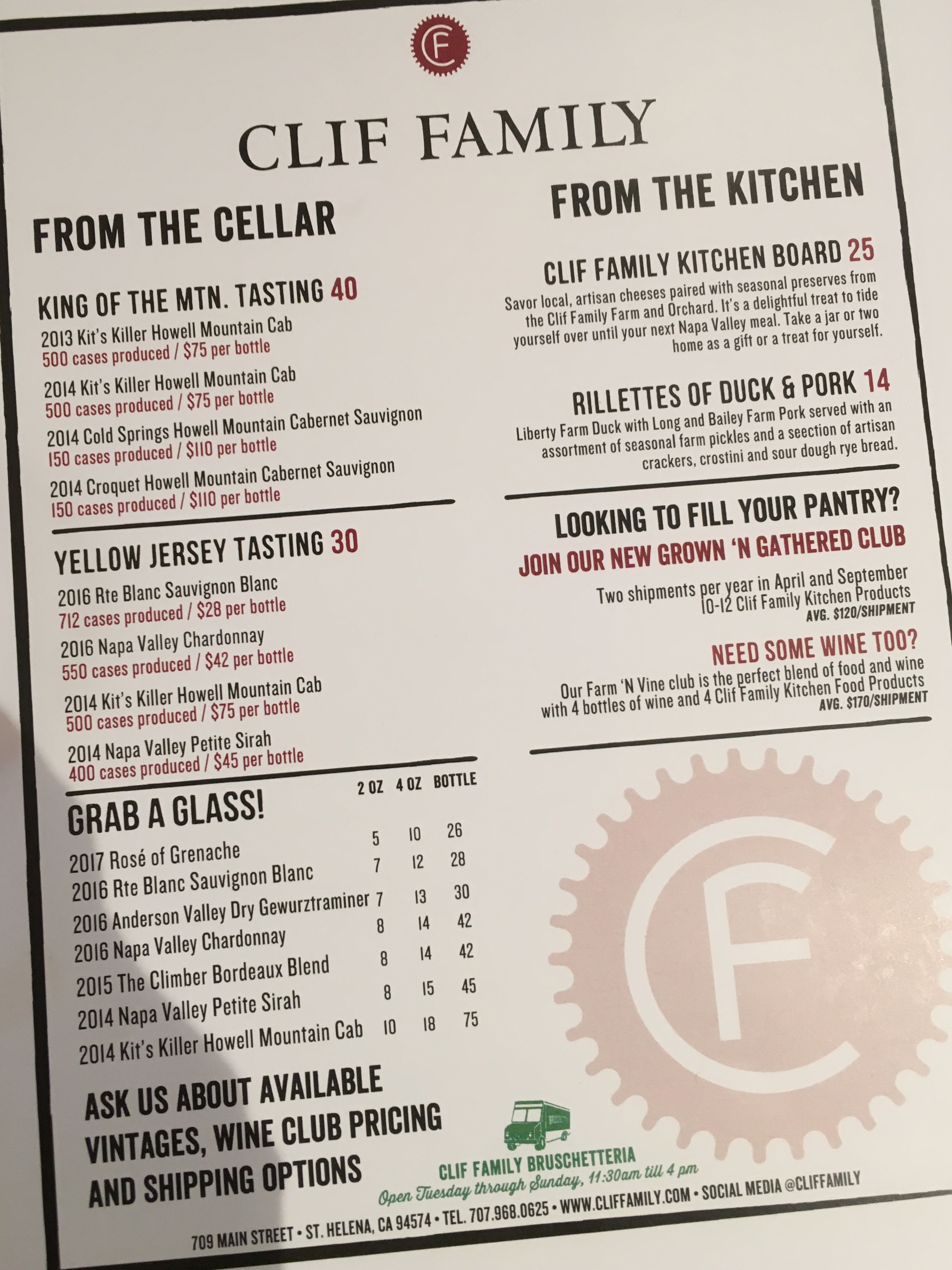 Our first stop was at Clif Family Winery in St. Helena. They just reopened their tasting room after an extensive remodel. The space feels fresh and cozy. They’ve created a terrific balance of wine tasting bar, coffee /espresso, lunch, artisan foods and of course, Clif Bars. And, their Bruschetteria Food Truck is parked right outside!