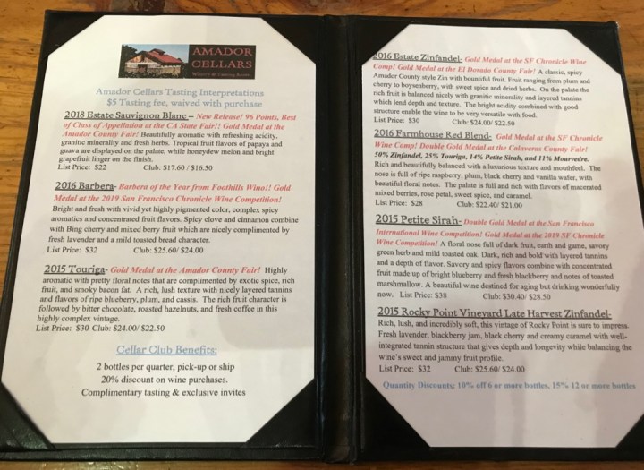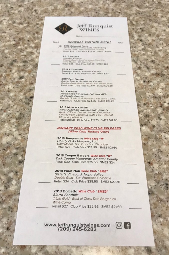 Several hosts at the wineries suggested we stop at Jeff Runquist Wines so we gave it a try. The wines are from the grapes of 19 growers throughout the state of California. Nearly all wines specify the vineyard designation and the grower’s name. It’s a different approach than you find at most of the wineries in Amador County.