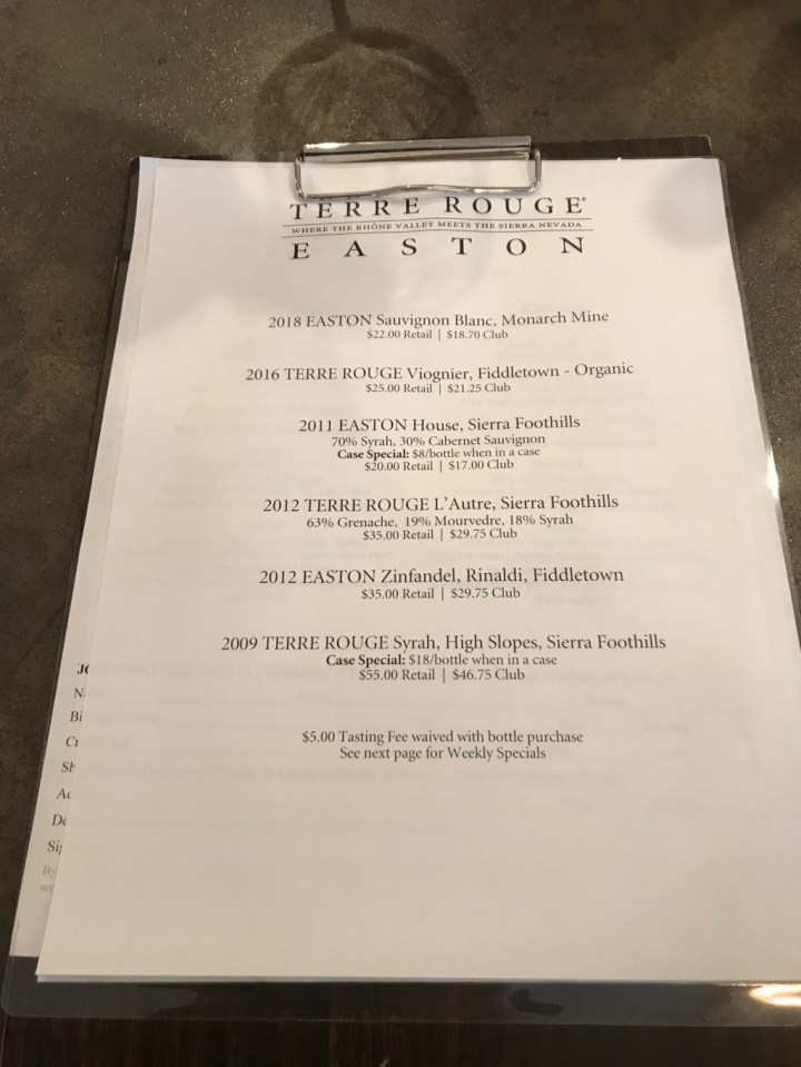 We enjoyed a number of their wines and packed up bottles of Terre Rouge L’Autre and Easton Zinfandel to take with us.