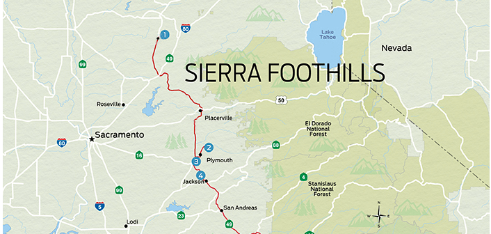 East of Sacramento in the foothills of the Sierra Mountain Range is gold country. In the 1840s the precious metal was discovered there. The area quickly prospered through the gold rush. At the same time vineyards were planted and wine was produced. The gold ran dry before the end of the century but the Zinfandel vines have endured.