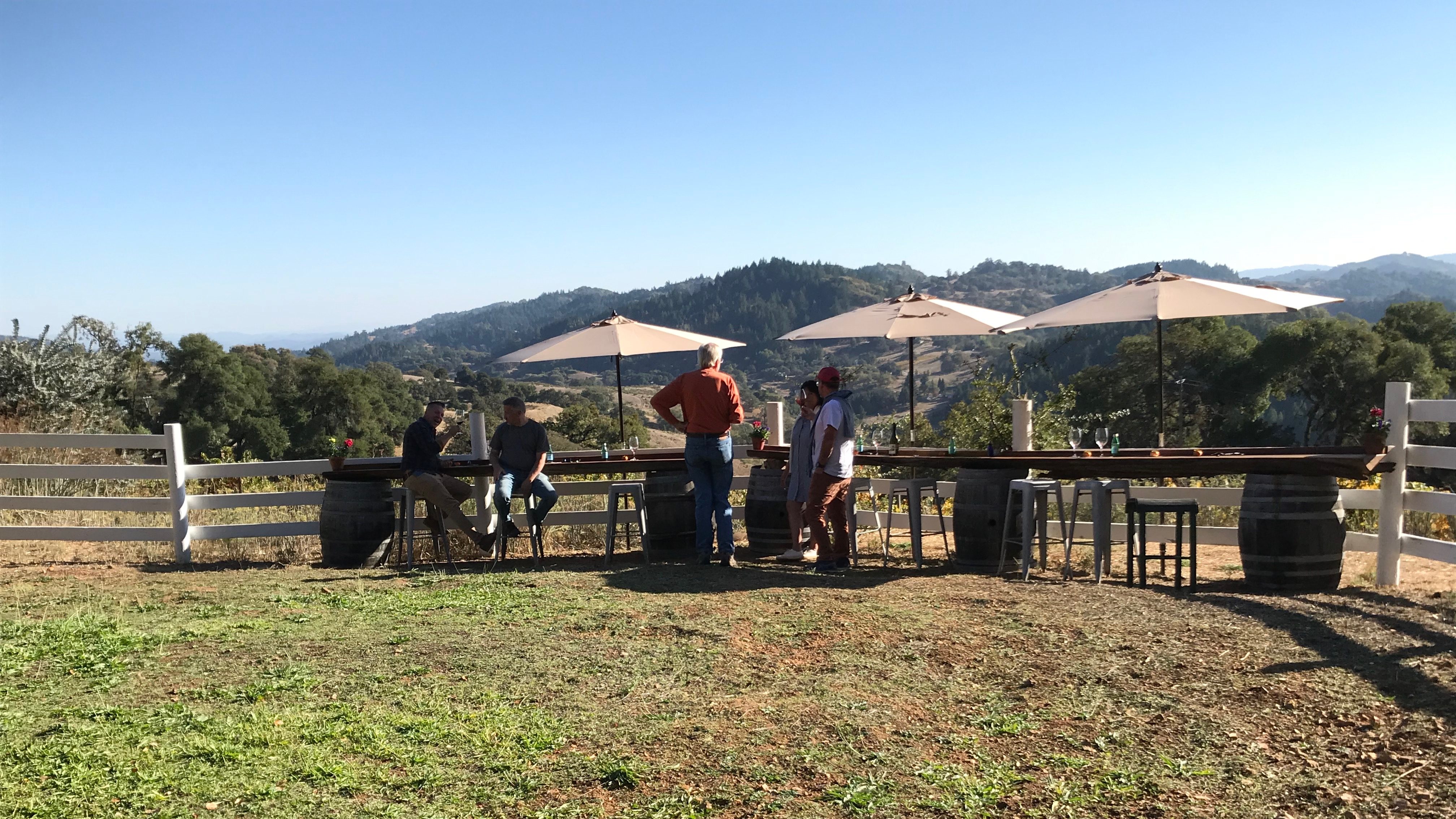North of Healdsburg there is a spectacular landscape overlooking the Alexander Valley and the Anderson Valley off Route 128 in Yorkville Highlands. There, above the fog line with knock-out gorgeous views, a new tasting “room” called SEAWOLF has just opened.