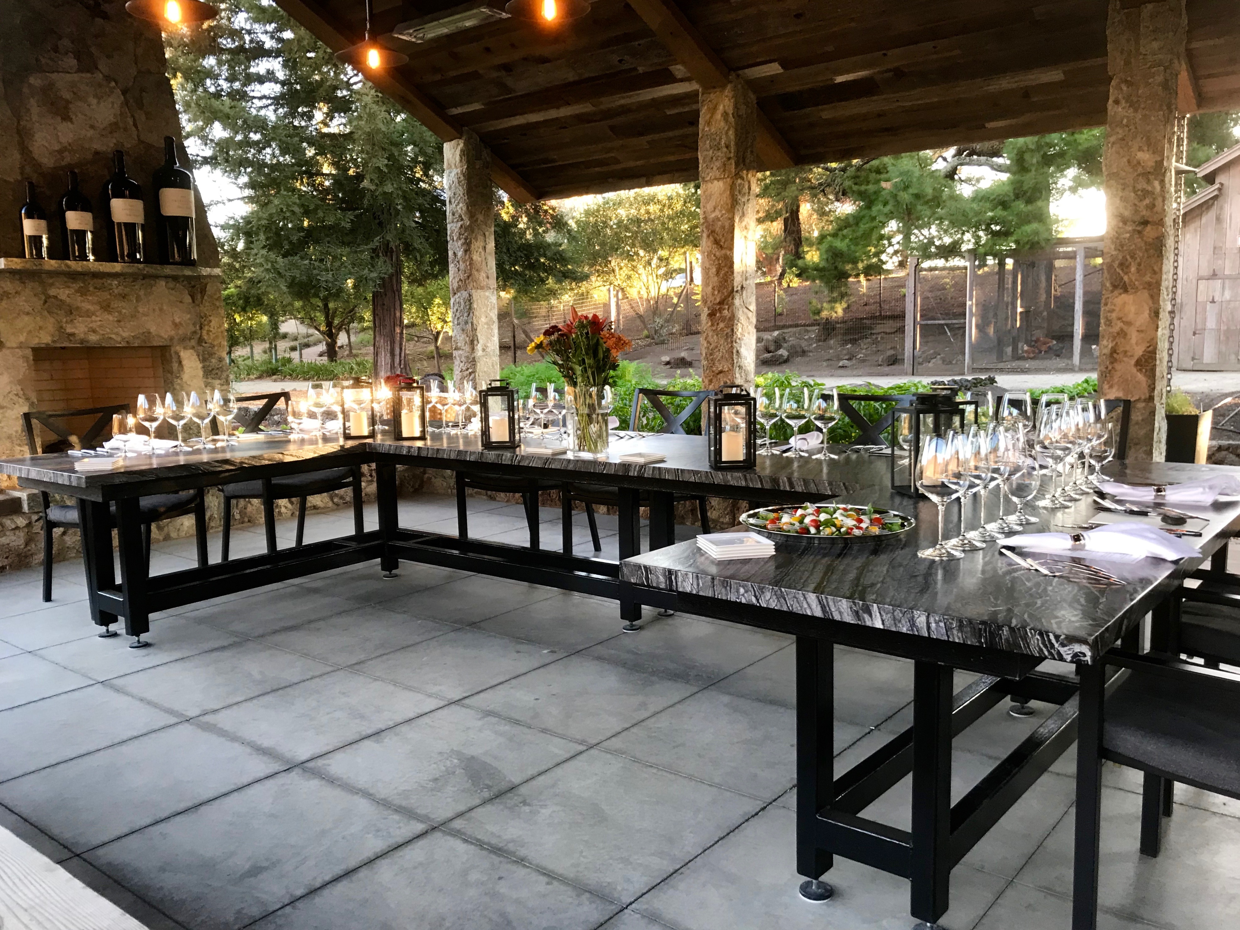 We had never been to Skipstone so this was a treat! A long private lane brings you to the Estate winery just outside of Geyserville. It’s quite a beautiful site even after a close call with the fires. It’s tucked into the hills with extensive vineyards, with a happy, thriving vegetable garden and a great stone pavilion for small events, as well as a private residence on the estate.