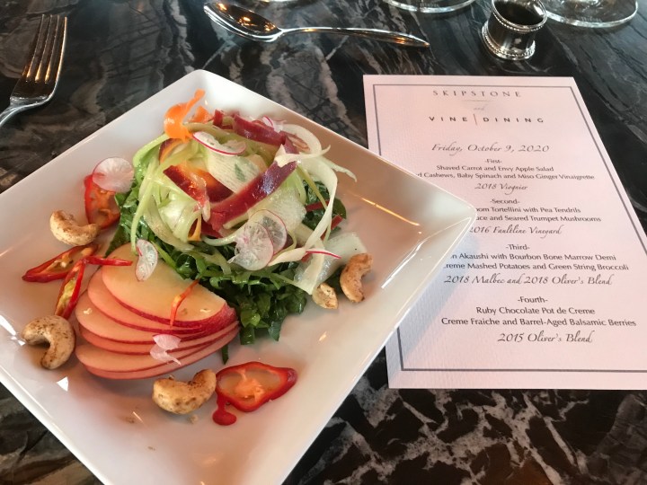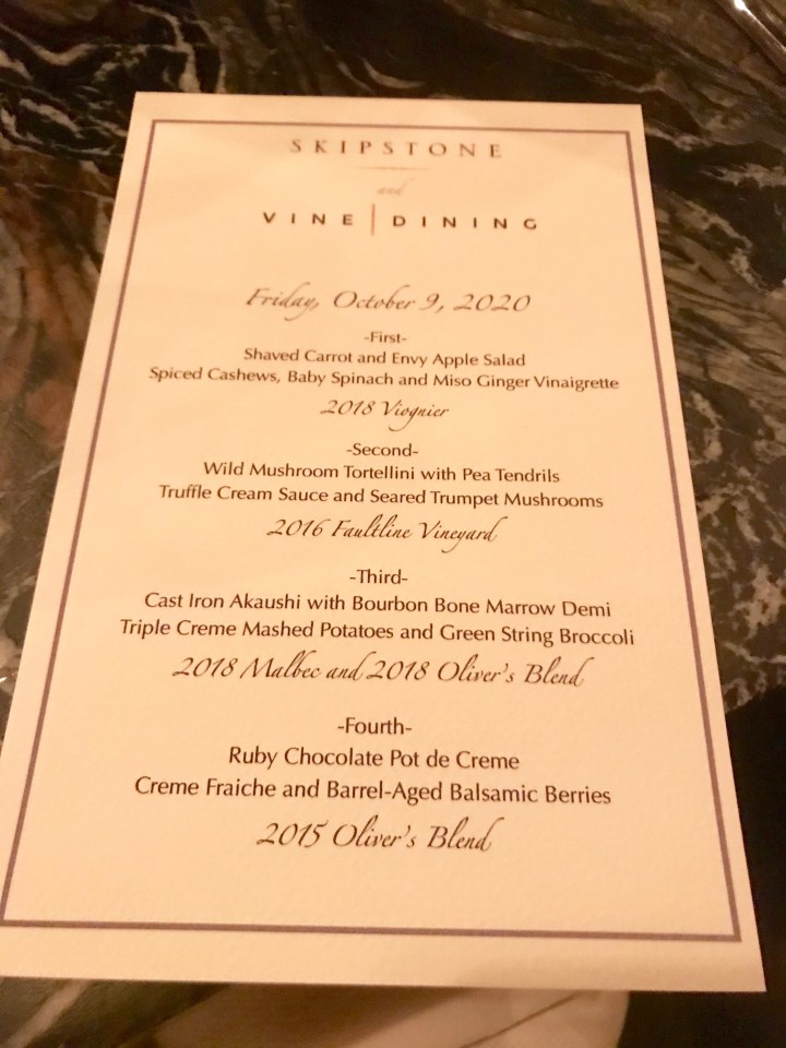 Chef Alycia of Vine Dining created and served an insanely fantastic dinner. From the hors d’oeuvres served with the Brut Champagne, each course was beautifully paired with Skipstone’s wines.
