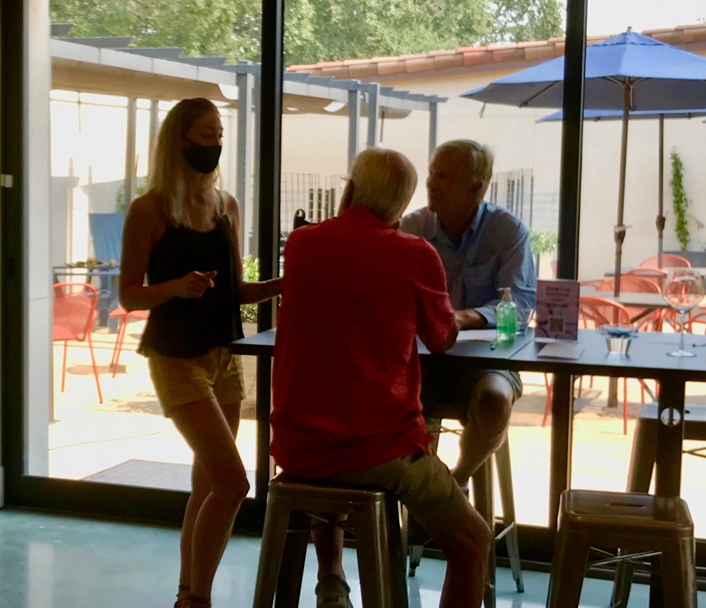 In the huge and empty courtyard of Bacchus Landing we met Whitney who invited us to come in to see the newly opened tasting room for Montagne Russe Wines. She was so gracious and the tasting room so inviting we could not resist her invitation.