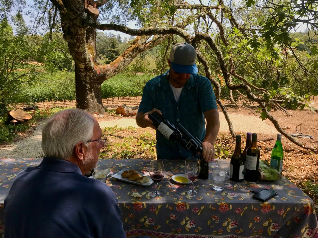 I thought our previous tasting of Paravel wines on a picturesque hillside in Henry Brothers Vineyard was impossible to beat but this setting under a 400 year old oak was so perfect.