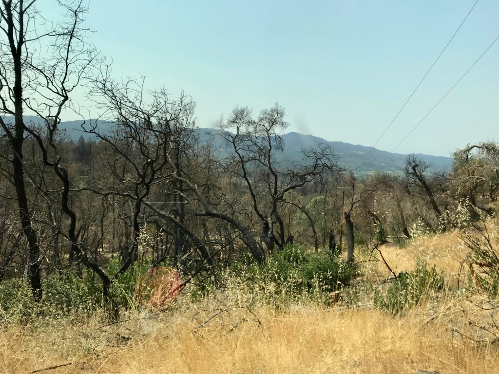 It’s difficult not to be moved by the view when you drive to Howell Mountain. We’ve driven there twice since the 2020 fires and both times I was struck with a feeling of despair seeing the devastation of homes, wineries, and charred hills.