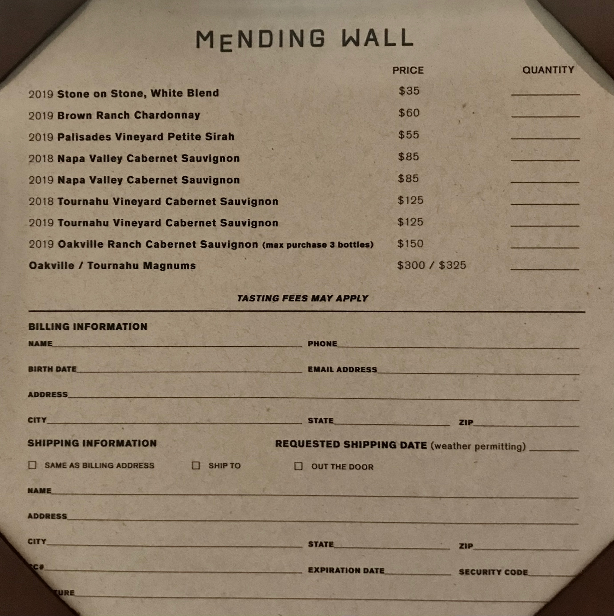 We were on a mission to try Mending Wall’s Petite Sirah. It was our only appointment of the day while we were doing some trip planning in Napa. Our host was Amy and we will forever remember her for one of, and I truly mean this, best tastings we have ever experienced.