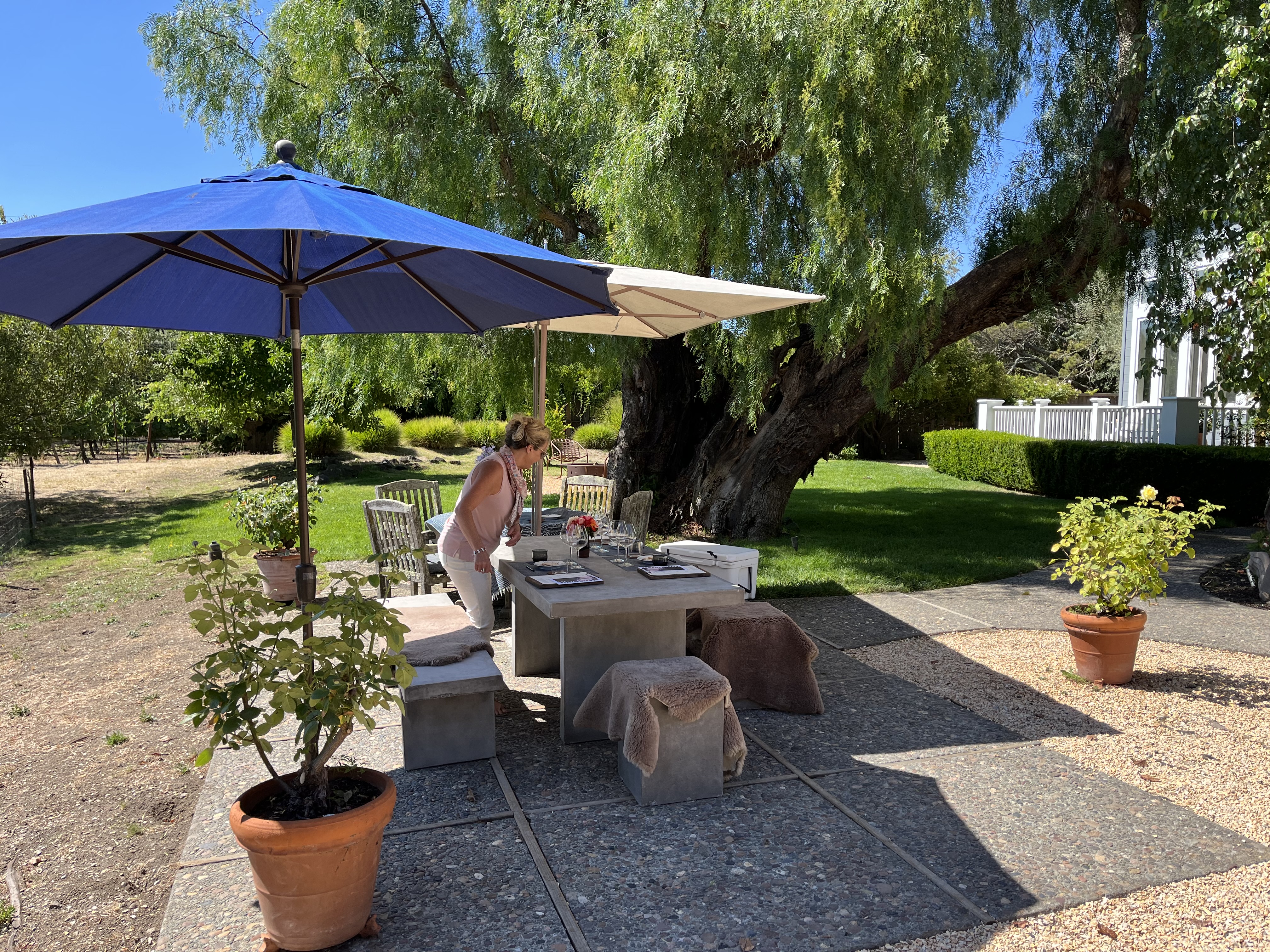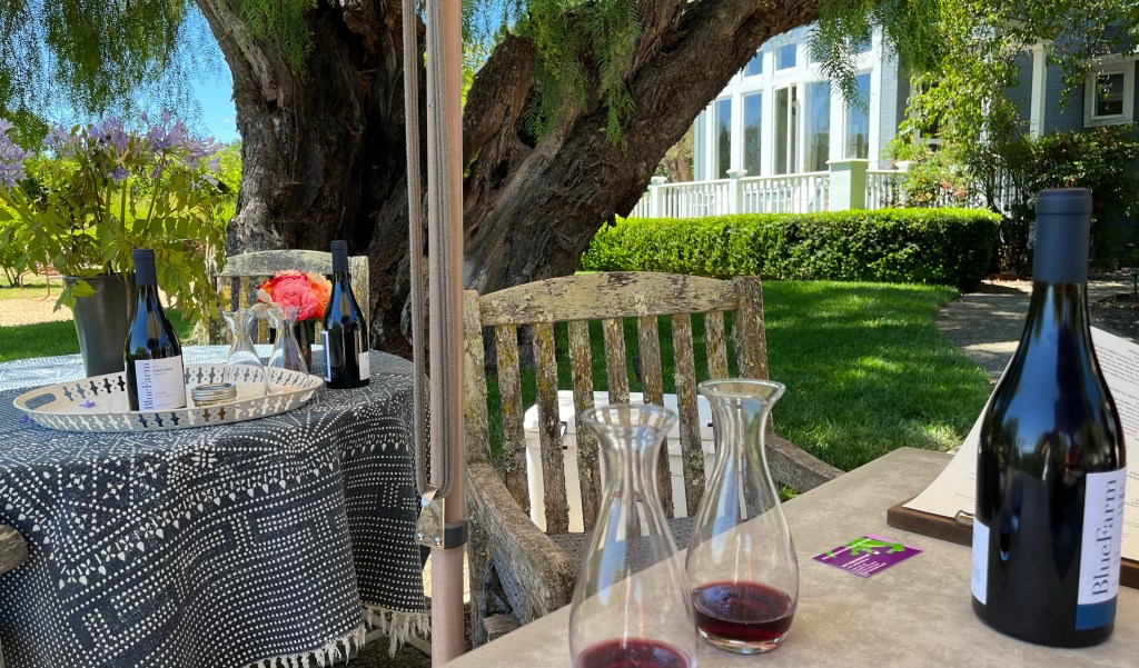 I’m a sucker for quaint, vintage architecture, especially when it’s poised in beautiful gardens and vineyards. We found exactly that at Blue Farm. While it was the wine that brought us here, the fabulous property was a surprise bonus.