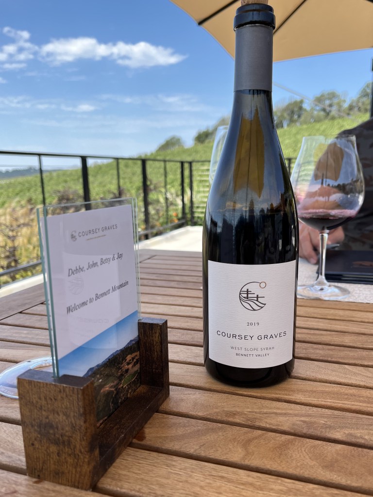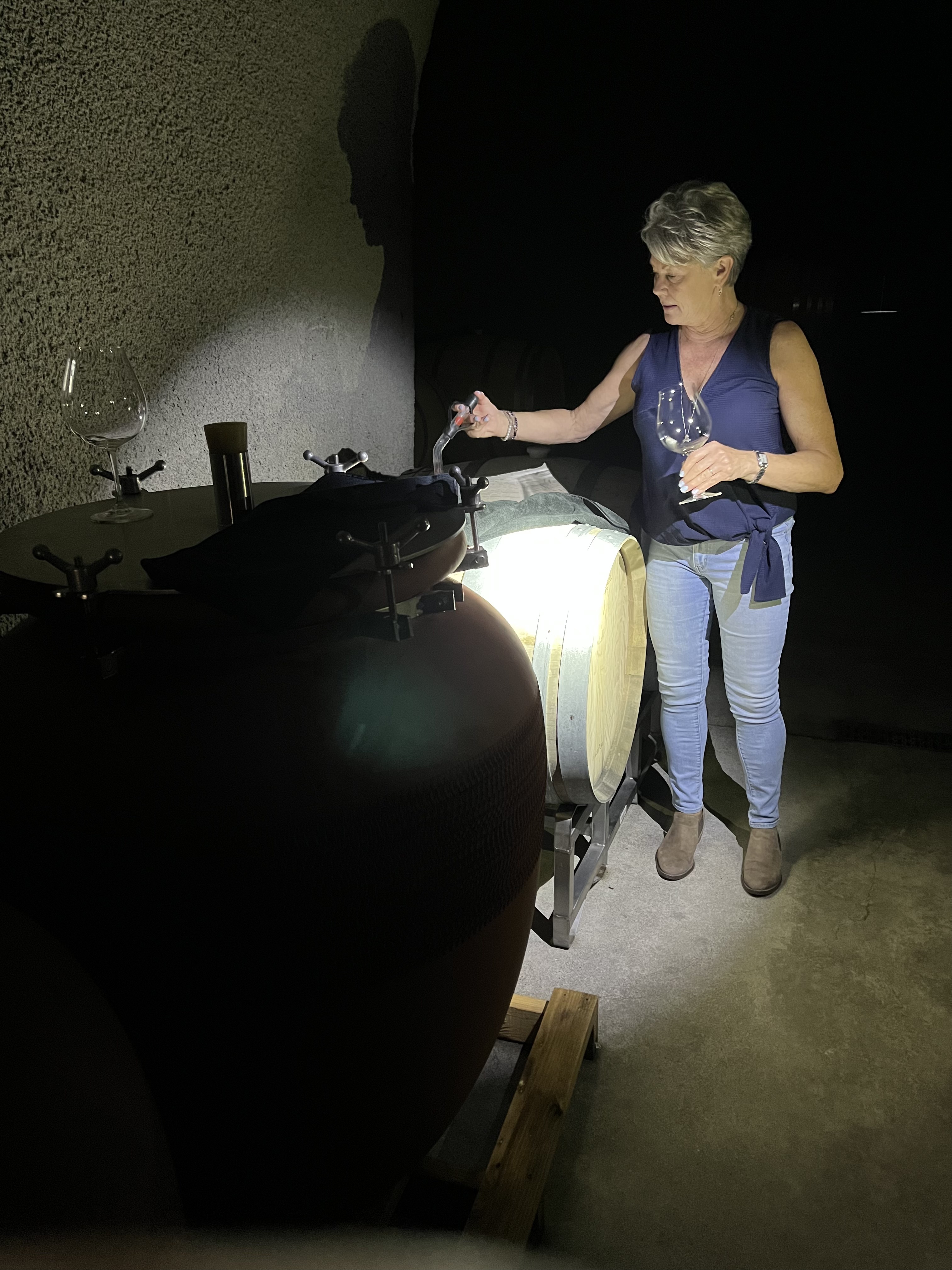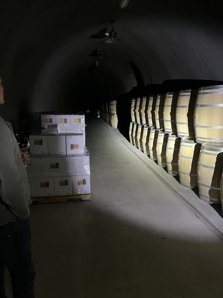 We began the tasting with a tour of their extensive cave system. Our host, Joanne Foley-McDonald armed herself with a battery of flashlights as the electricity cut off just as we arrived. Deep in the cave we stopped to barrel taste the 2021 Coursey Graves West Slope Syrah. Even as young and still barreled, we found it to be amazing.