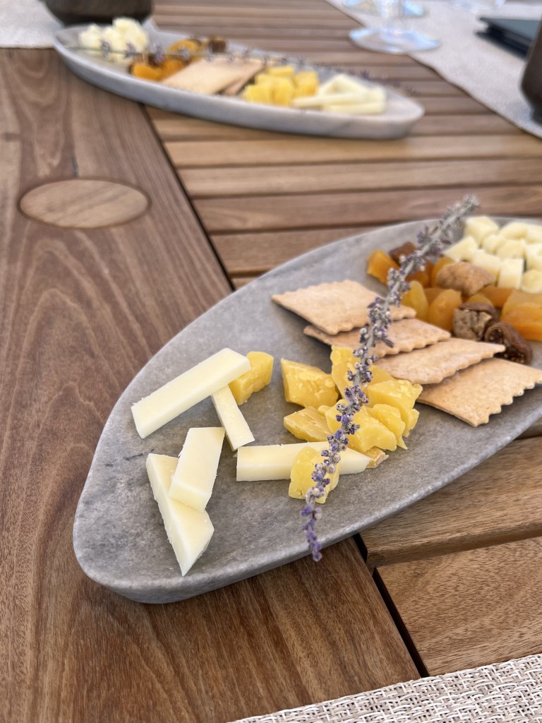 Our tasting started off with a 2017 Chardonnay, Sonoma Coast followed by the 2019 Syrah Estate, Bennett Valley. We had some great local cheeses, nuts and fruit to pair with these. The 2019 Cabernet Sauvignon, Napa Valley came next along with the 2019 BME Estate Blend, Bennett Valley.