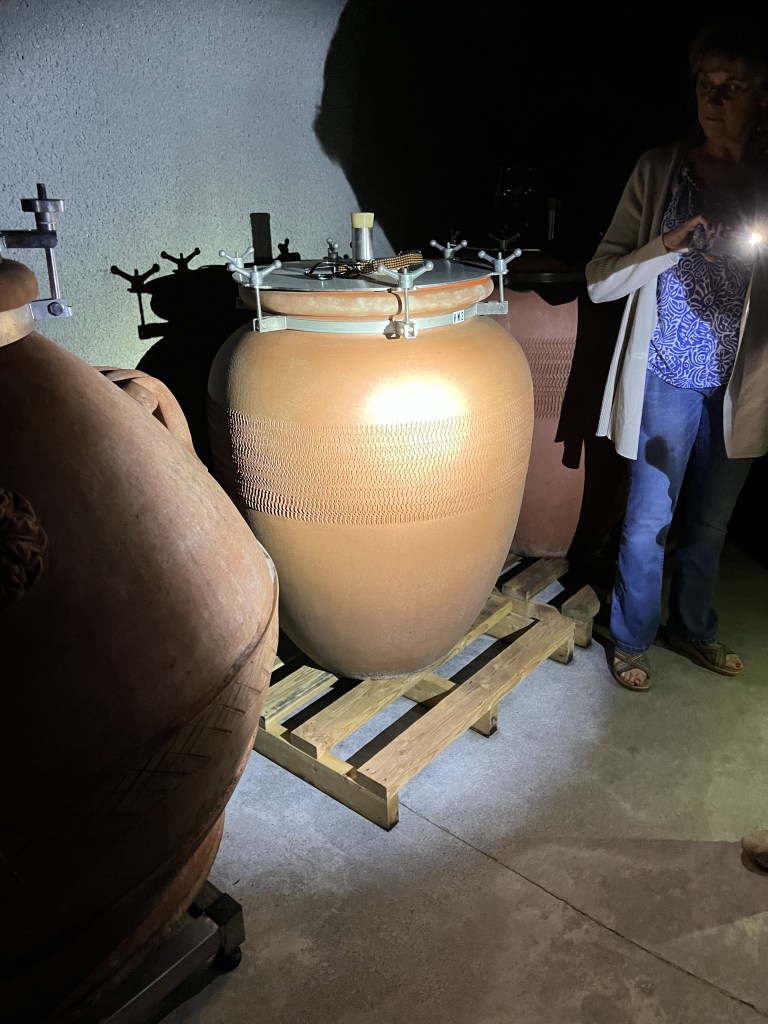 Winemaker, Cabell Coursey utilizes imported Italian terracotta eggs in some of his wine making. We found the amphorae alongside a new egg created by a potter in Oregon State. Coursey is not using the new eggs but I thought it interesting to mention and show a picture of it as this is the first American made clay egg (right photo) I’d ever seen.