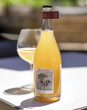 We were returning from a visit to the coast in Mendocino via route 126 and made a stop at Maggy Hawk in Anderson Valley. Chad Bovée hosted us on one of the tasting room’s beautiful patios. Sadly my iphone ate my photographs of the tasting room so you’ll have to take my word for it that it is quite an attractive place. Maggy Hawk makes Chardonnay, Pinot Noir, and a recent addition – Pét-Nat.