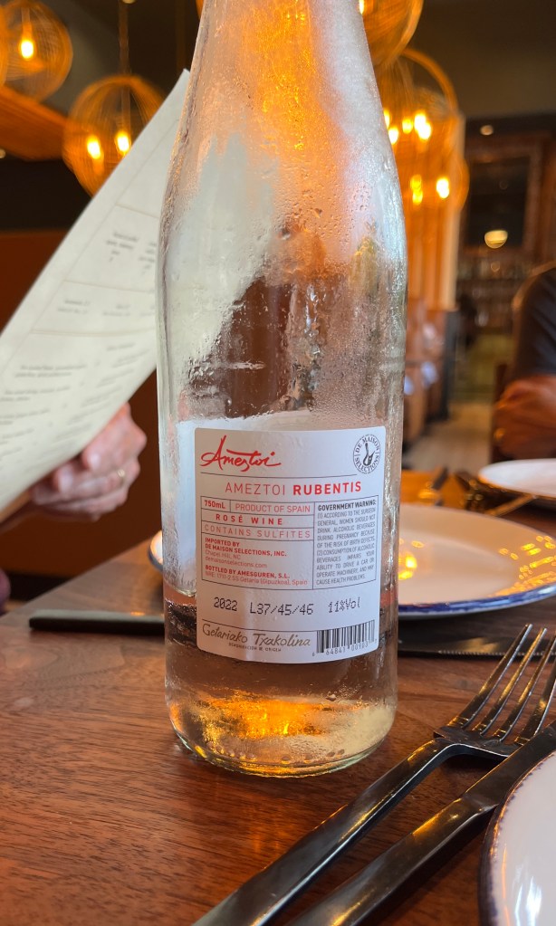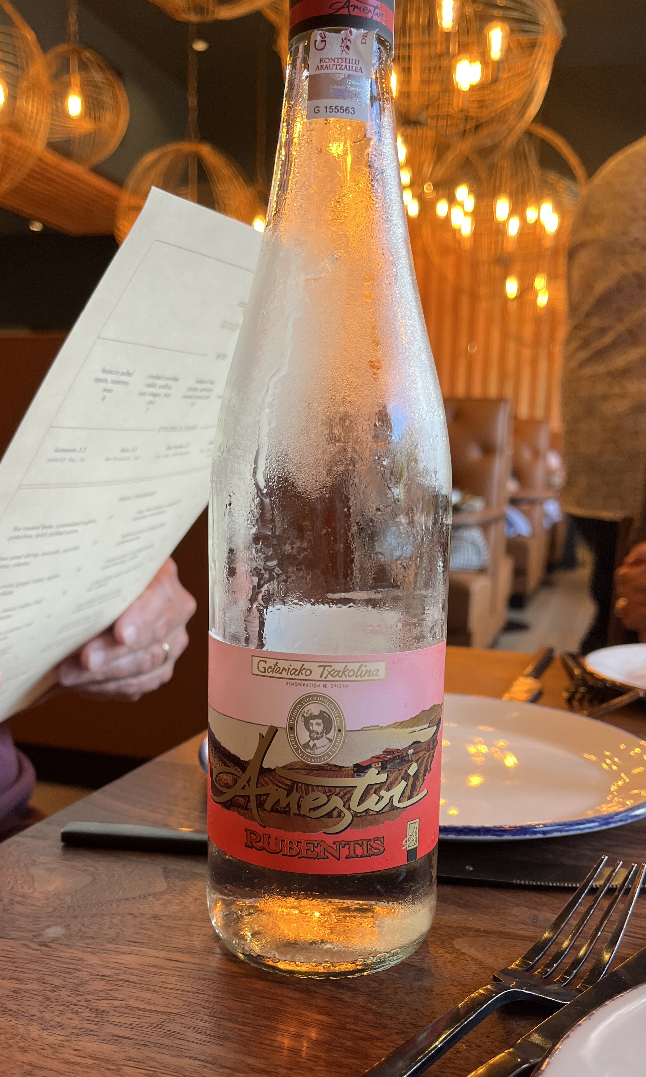 On our second visit, our wait staff recommended a Spanish rosé wine to start off with. Delicious, with a bit of spritz to it. It’s from a family winery in the Basque region of Spain. A wonderful find for this time of year. Writing about restaurants is not really my thing but I wanted to introduce you to this great wine, the 2022 Ameztoi Rubentis and it seemed a logical way to tell you how we got it. Hopefully you can find some to try.