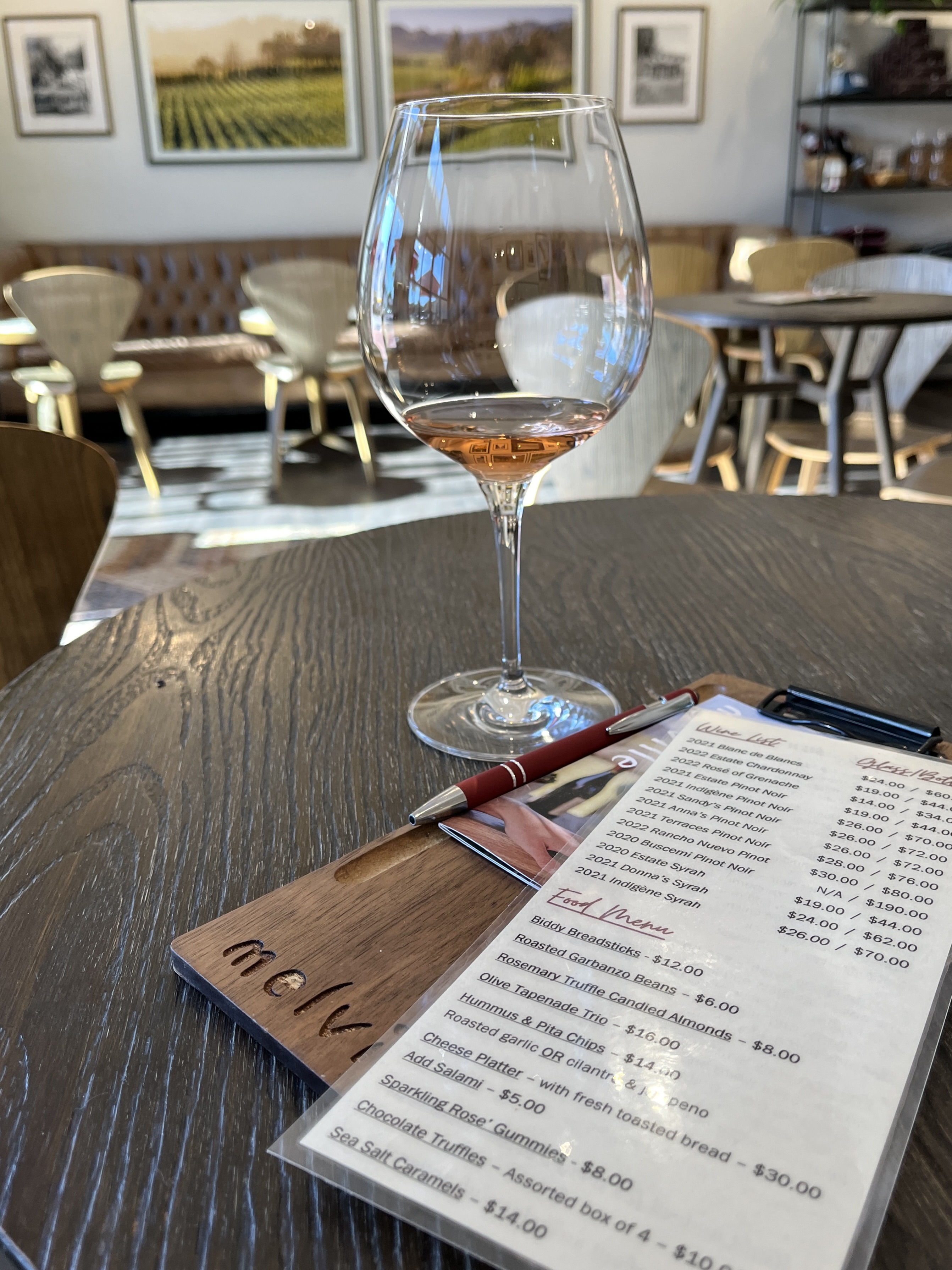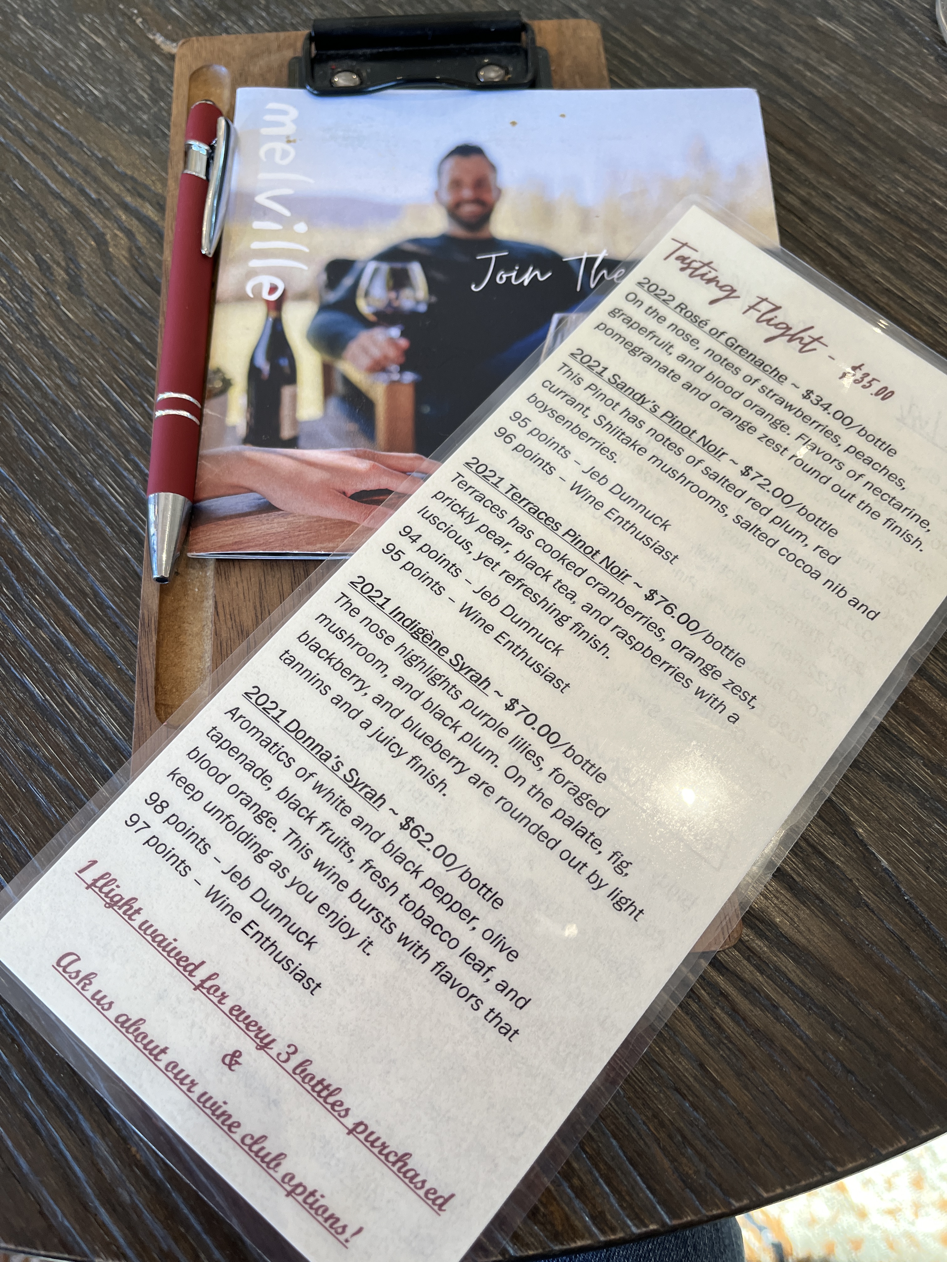 Melville’s tasting room is right on State Street with indoor and outdoor tasting available. It’s very hip. They offer small bites to pair with their wines.