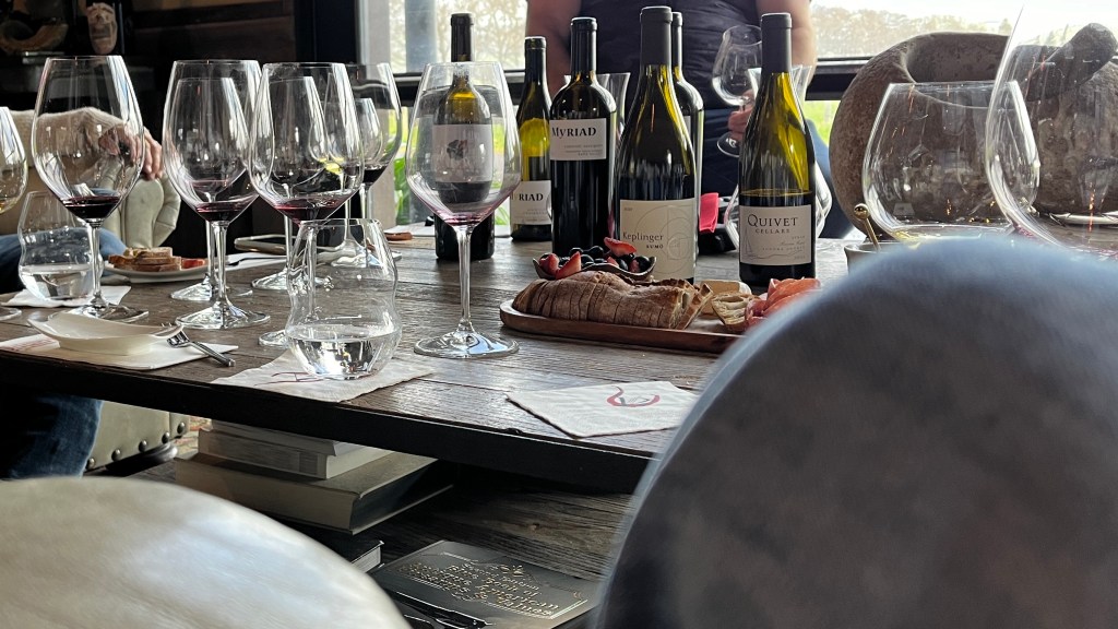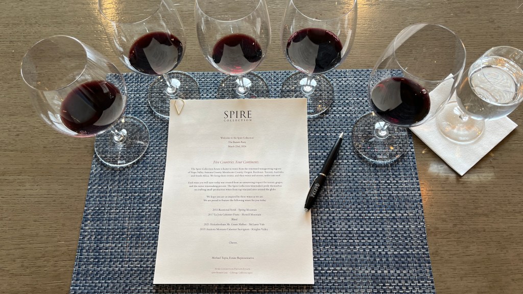 It’s ten o’clock in the morning and we are sitting down to taste wine. We’ve returned to the Spire Collection just outside of Callistoga. I wrote about our first visit in the blog entry – Tasting in Napa. It will give you a gracious plenty on the background of the Spire Collection so I won’t repeat myself.