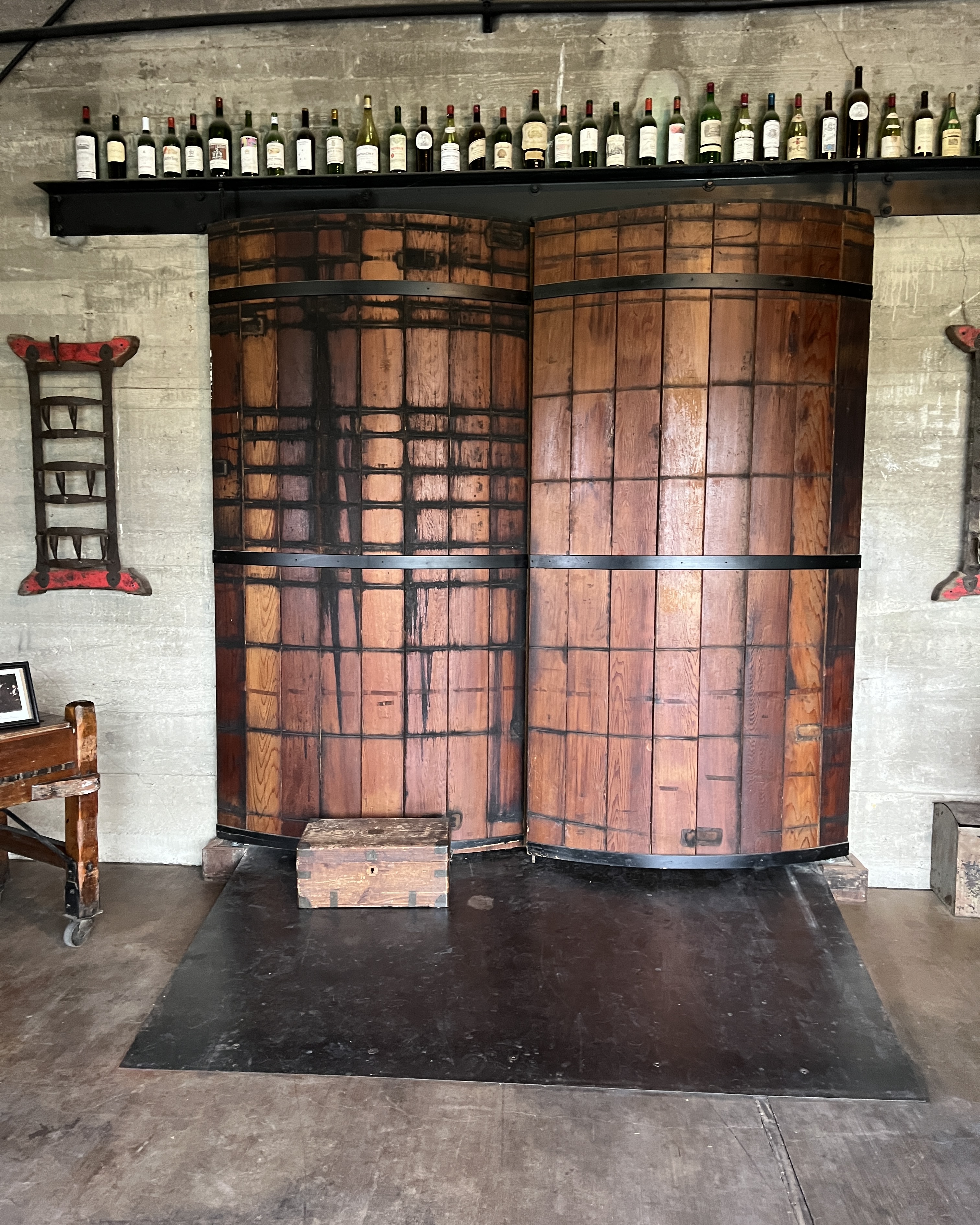 He started us off with Myraid’s 2022 Wente Clone Chardonnay while giving us a tour of the old facility. The Chardonnay was excellent by the way. The place, now a storage and tasting facility, is filled with wine paraphernalia of all kinds and would interest any collector.