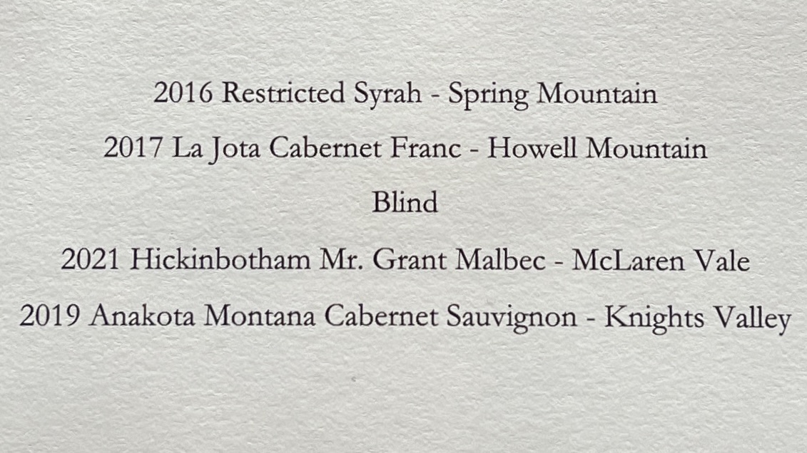 Needless to say, we did not leave without a few bottles which included the 2021 Hickinbotham Mr. Grant Malbec and the 2017 La Jota Cabernet Franc Howell Mountain.