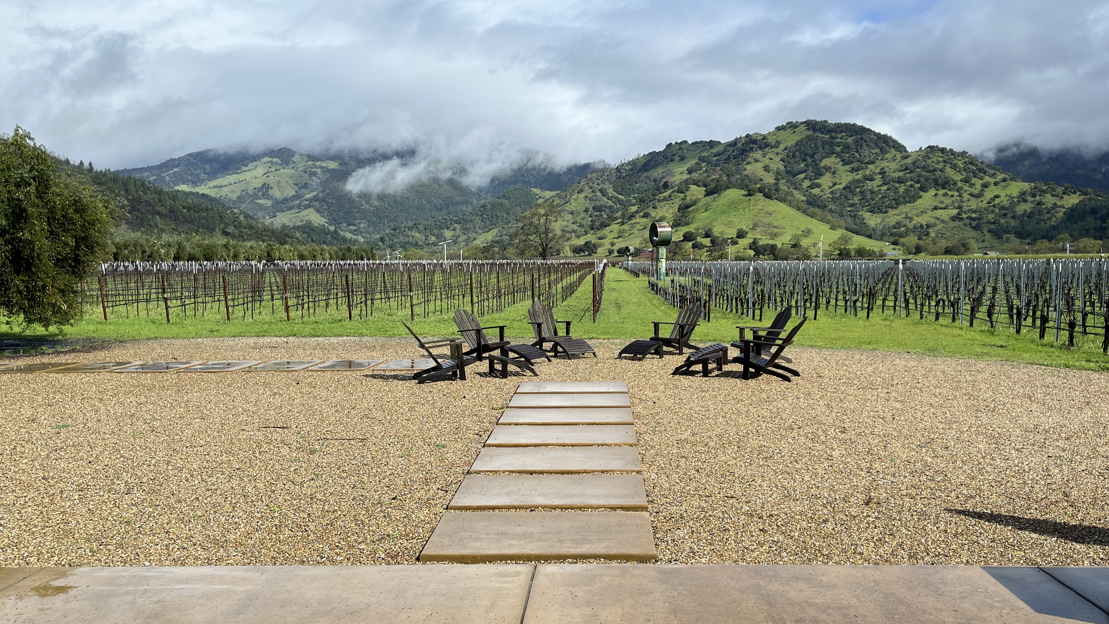 It is a modern, tastefully appointed tasting room. You take in a fantastic view of the Palisades and Mount St. Helena while you listen to a selection of music of your choosing and to a well versed host offering up an entertaining guide through the wine tasting.
