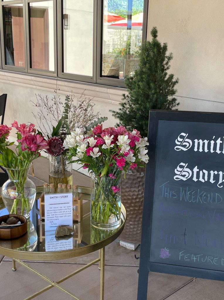 Tucked in a corner in Bacchus Landing in Healdsburg is the tasting room of Smith Story. It’s a welcoming storefront with a beautiful garden patio.