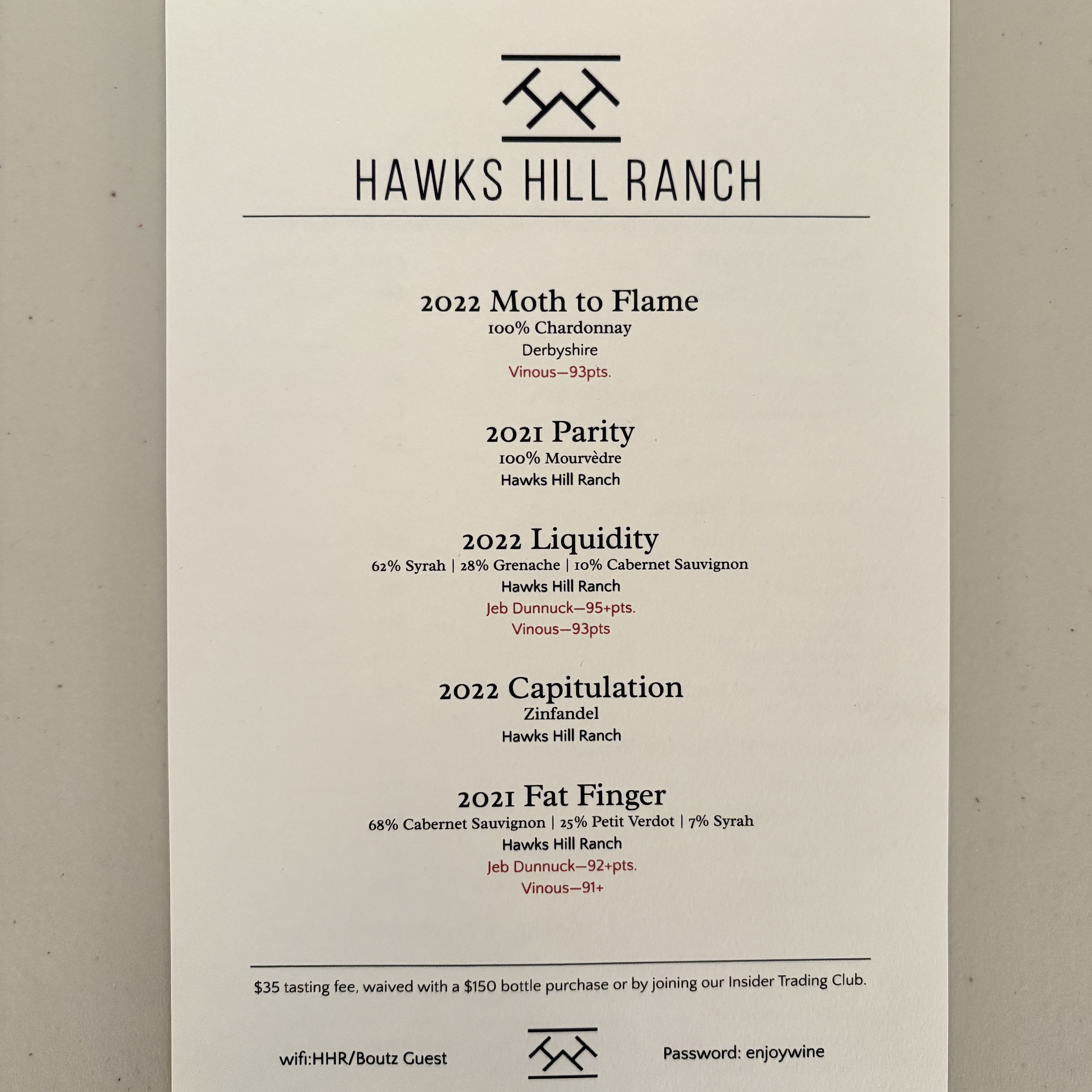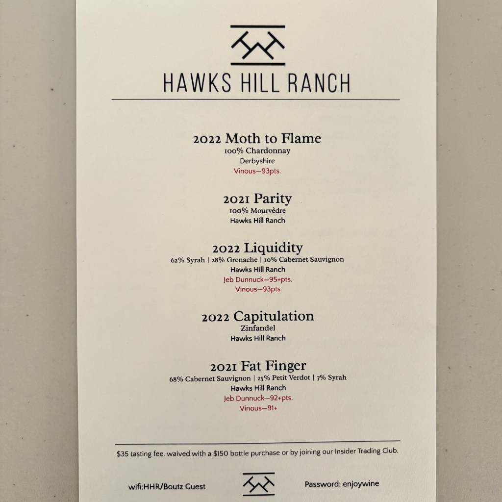 Their 2022 Moth to Flame Chardonnay was delicious as were the 2022 Dark Pool Syrah and the 2022 Capitulation Zinfandel which we took with us.