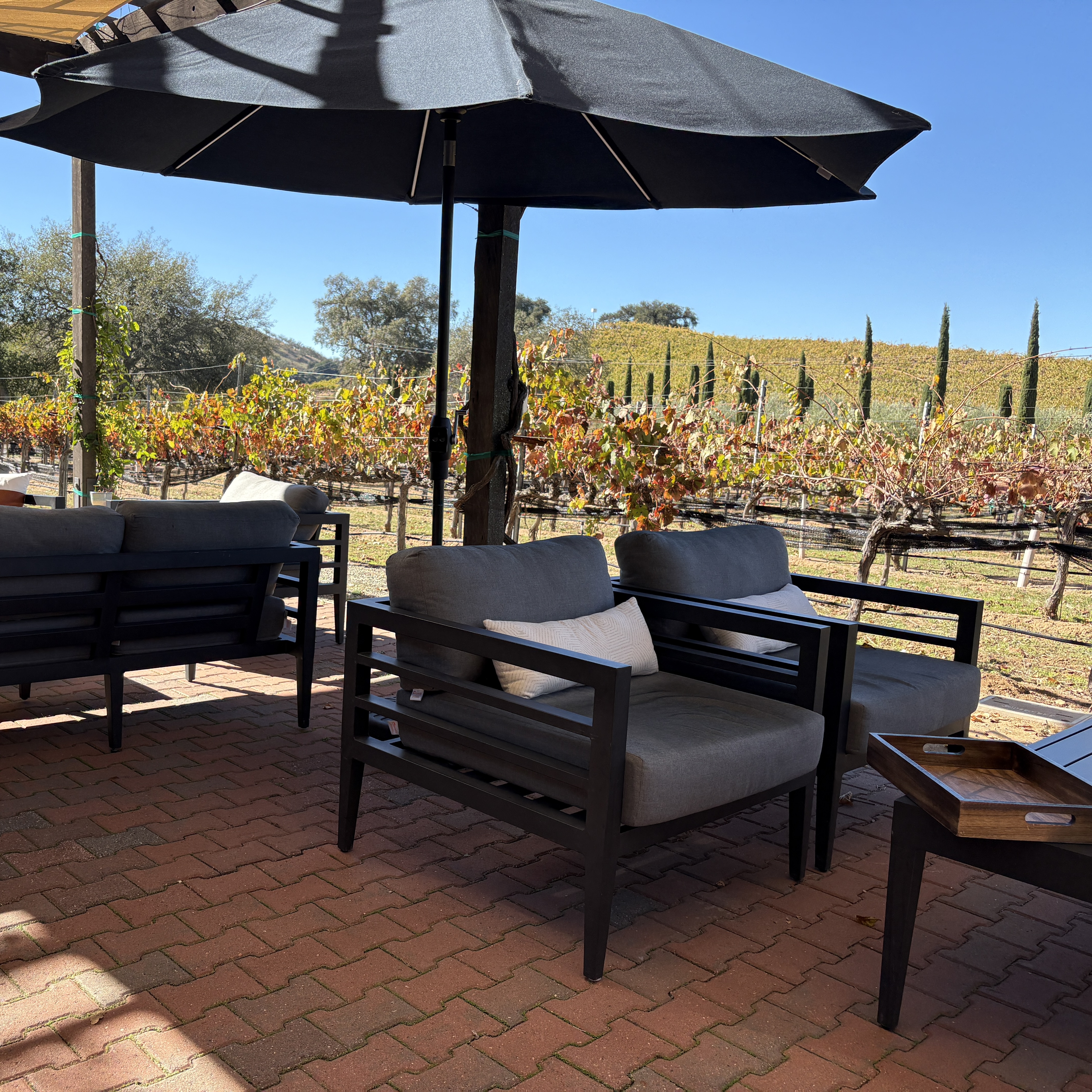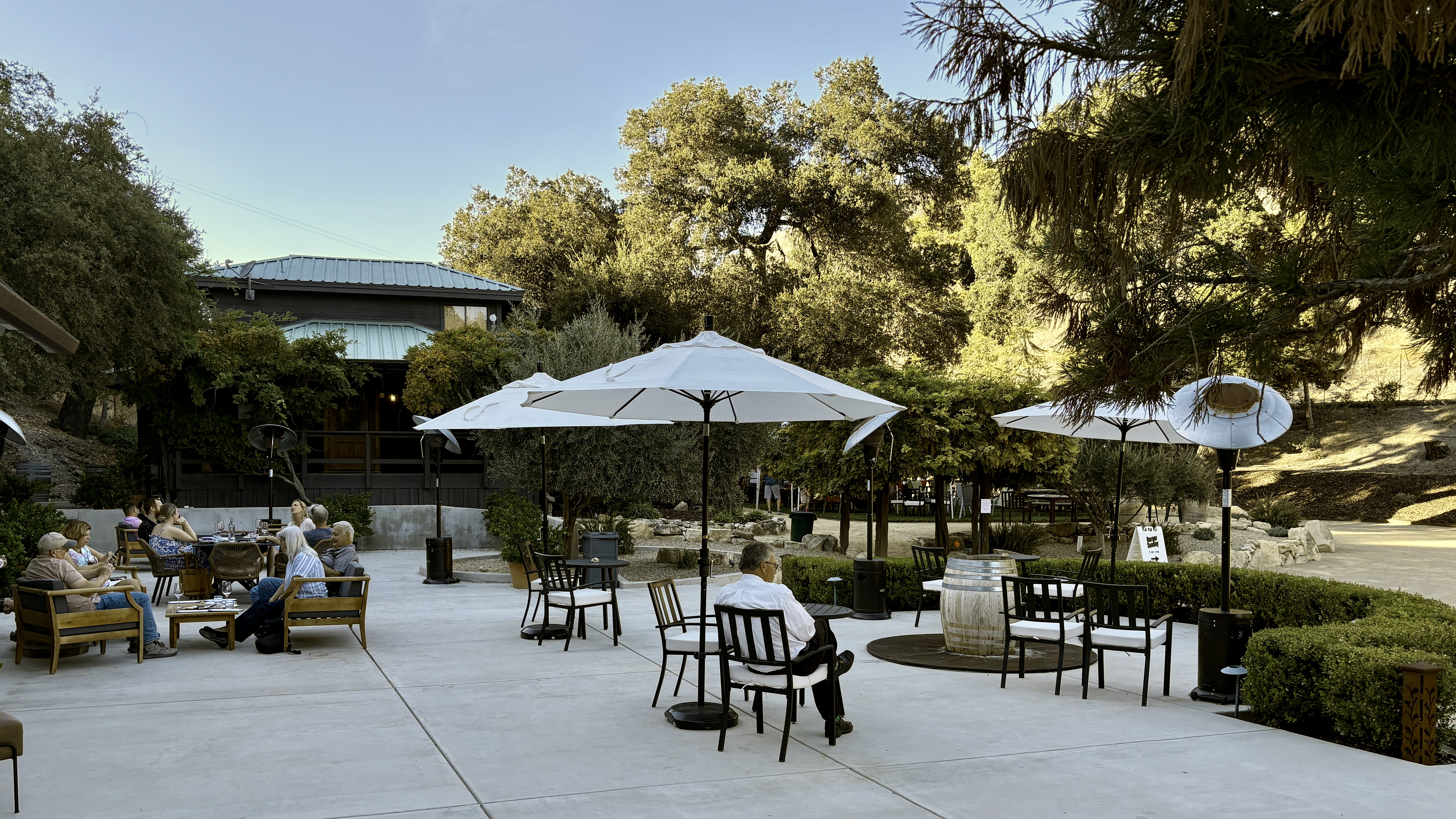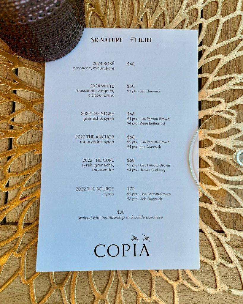 Kylie hosted us on the deck overlooking the vines. Copia grows grapes on their two estates – one in Willow Creek and the other in the Adelaida District. They produce a handful of award wining wines from Rosé to deep rich Syrah and Cabernet Suavignon. The 2022 The Story Grenache/Syrah, the 2022 The Anchor Mourvèdre/ Syrah and the 2022 The Cure Syrah/Grenache/Mourvèdre were our favorites.