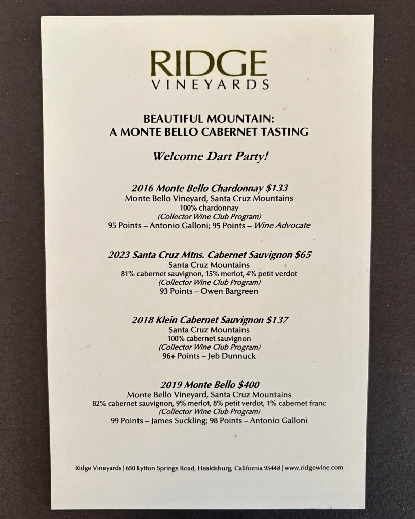 Ridge Vineyards is the producer of some of our favorite wines. We’ve enjoyed them since the 1980’s getting their shipments in Florida and coming out to visit initially at their first estate – Monte Bello in Cupertino.