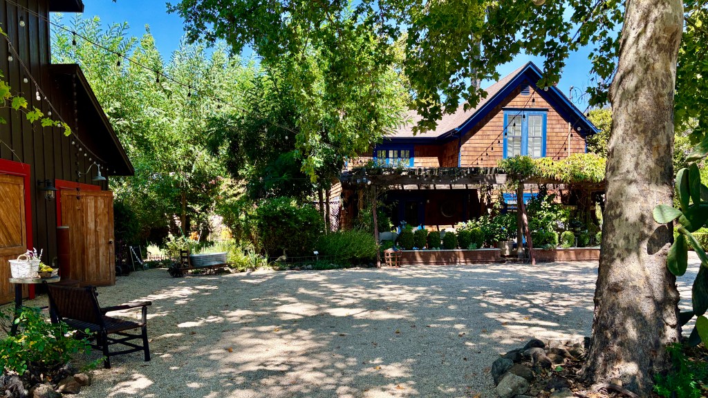 Their home and small barn tasting facility are surrounded by beautiful gardens and vineyards on all sides. When you arrive there are two rather robust rescue pigs to greet you and a blond lab that appears to be quite used to playing second fiddle to the pigs.